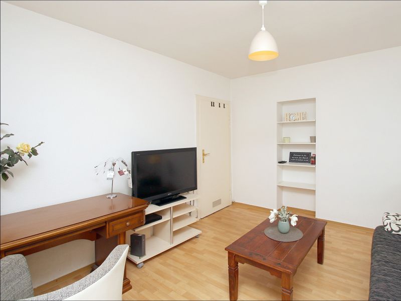 Neben dem gemütlichen Wohnzimmer erwartet Sie eine geräumige Küche (inkl. Einbauküche) mit Platz für einen kleinen Essbereich, ein Tageslicht-Bad mit Wanne sowie Waschmaschinen-Anschluss und ein optimal geschnittenes, freundlich helles Schlafzimmer. Wohn- und Schlafbereich sind mit einem pflegeleichten Laminat ausgelegt, die Küche und das Badezimmer, der Nutzung entsprechend, mit weißen, schlichten Fliesen bestückt.