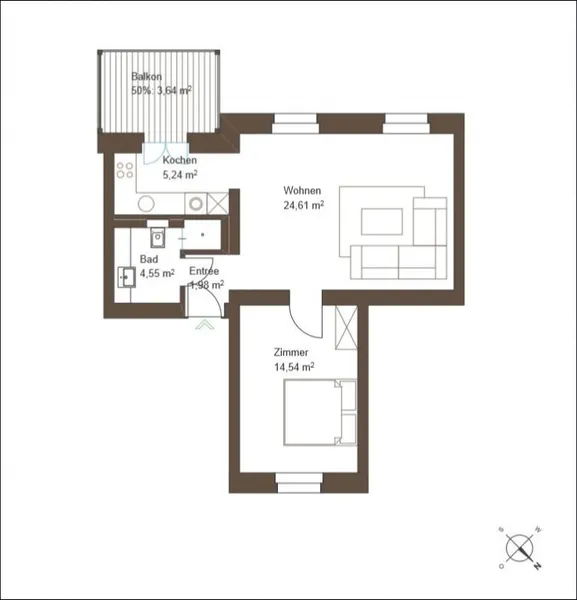 Sie überzeugt unter anderem durch den gemütlichen, offen gestalteten Wohn-/Essbereich sowie der angeschlossenen, hellen Küche. Das optimal geschnittene Schlafzimmer ist zum ruhigen Innenhof hin ausgerichtet. Desweiteren erwartet Sie ein modern gefliestes Dusch-Bad mit schicker Ausstattung.