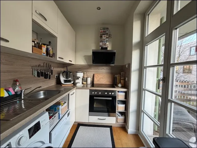 Die verbaute Küchenzeile ist Eigentum der aktuellen Mieterin und sollte bestenfalls übernommen/abgekauft werden. (€ 1.000,- VHB)