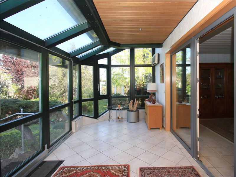 Wintergarten: Der lichtdurchflutete Wintergarten ist ein echtes Highlight. Er bietet direkten Zugang zum Garten und ist perfekt für entspannte Stunden im Grünen, für Hobbygärtner oder als zusätzlicher Wohnraum in den kühleren Monaten.