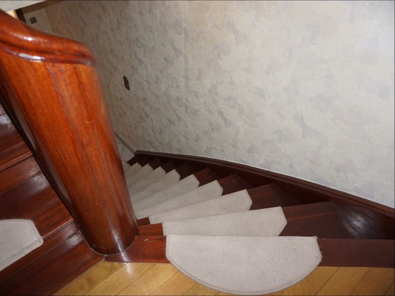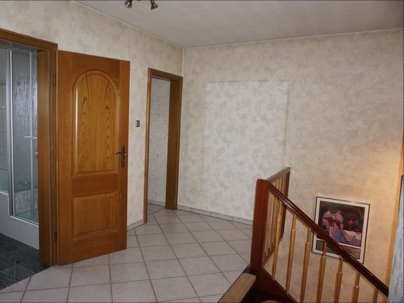 Die Zimmer im EG sind mir robustem Parkettboden ausgelegt, im OG mit hellen Fliesen, die Wände teilweise mit Raufaser oder anderer Tapete tapeziert.