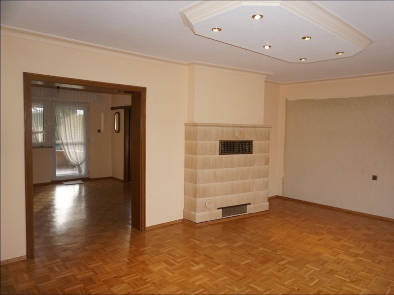 Wohn- Esszimmer mit schönem Eiche-Parkettboden ausgestattet