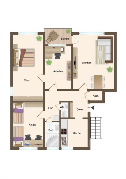 Erdgeschoss mit wenigen Treppen erreichbar